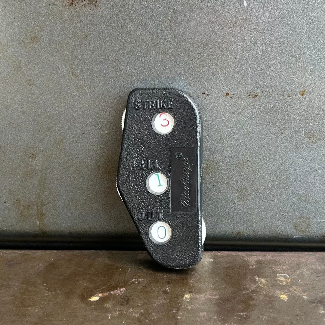 My dad used the clicker to keep track of balls and strikes and outs. I use it to keep him near. When I’m rummaging through my bag and come across it, I say hello and give it a click. And when I need to calm myself or center myself or regain my composure, it’s the thing I reach for: Click click click, hello, and you’re right there with me, Dad, reminding me to have patience, weather the storm, listen more than I speak. It’s been five years, and I wish I was learning these lessons with you here, but for now I click.