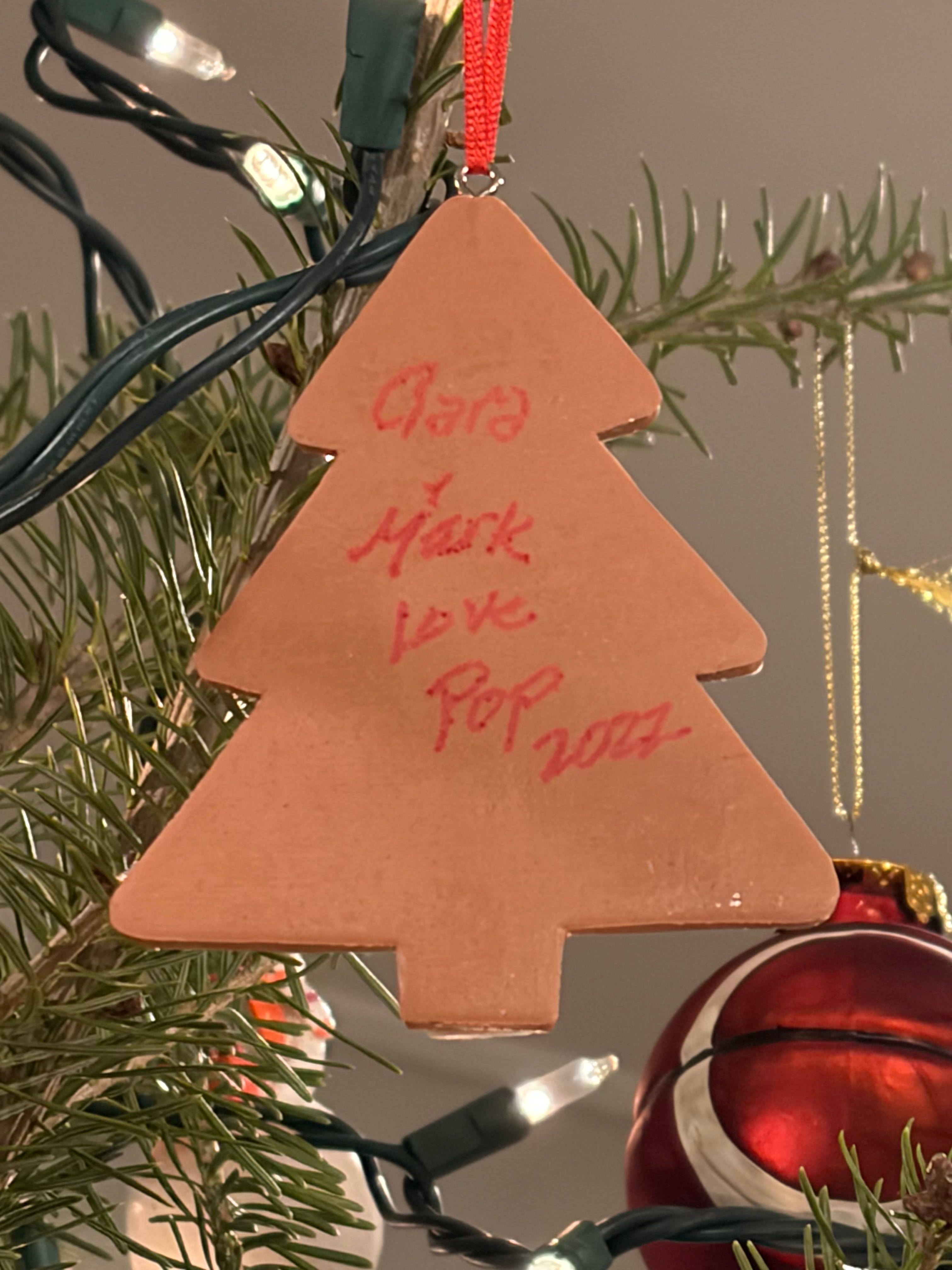 The holidays were very hard that year. Dad was a huge part of what made Christmas magical. He was pure joy at Christmas and loved to be with all of us, and it was surreal to be without him. But it turned out we weren’t. Just before dinner on Christmas Eve, my mom announced that she had gifts for everyone. When we opened our boxes, we found the ornaments Dad had been so excited to buy in Maryland. He’d signed the back of mine “Ciara & Mark, Love Pop 2022.” Many tears were shared around the table that night.